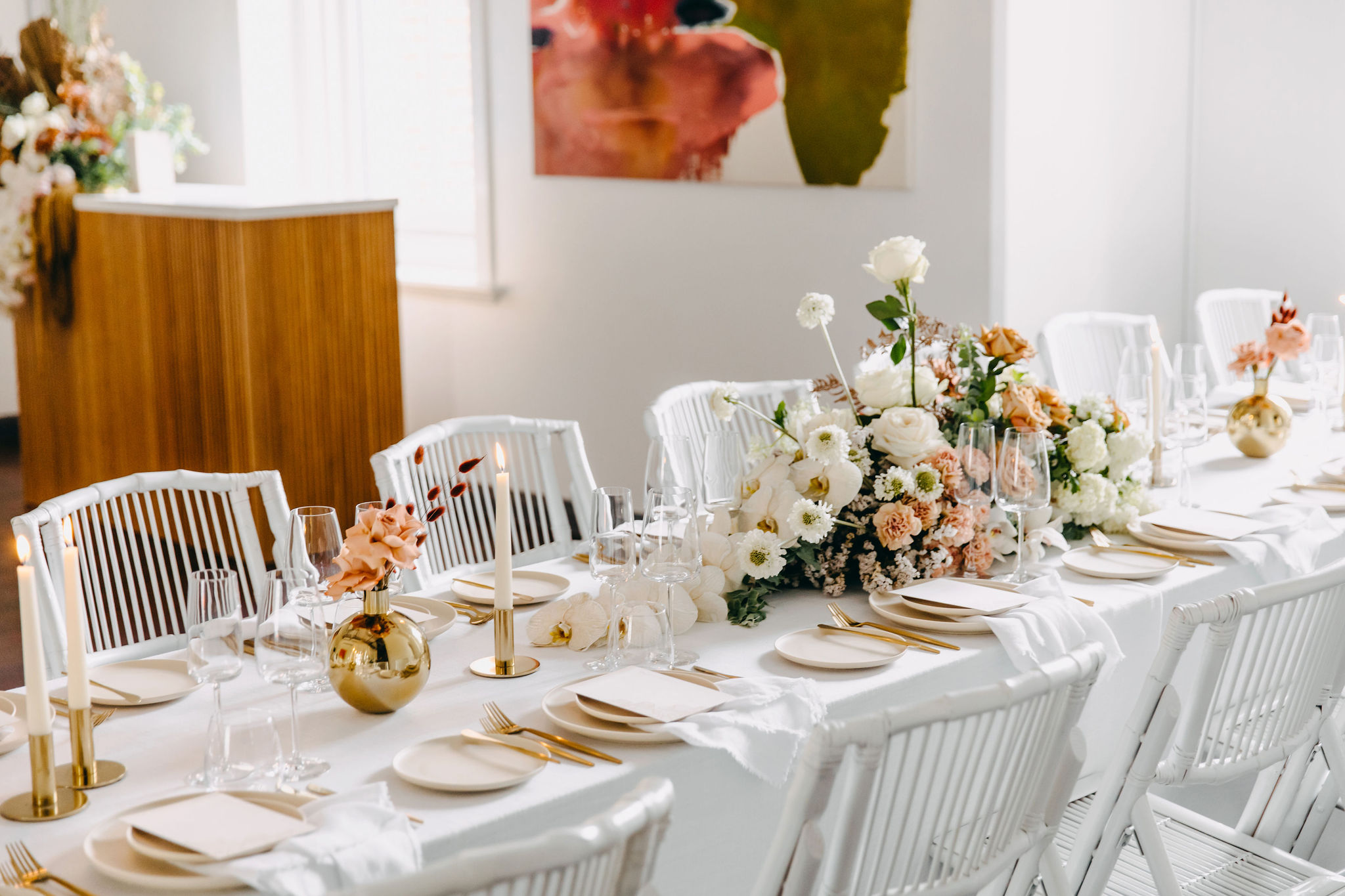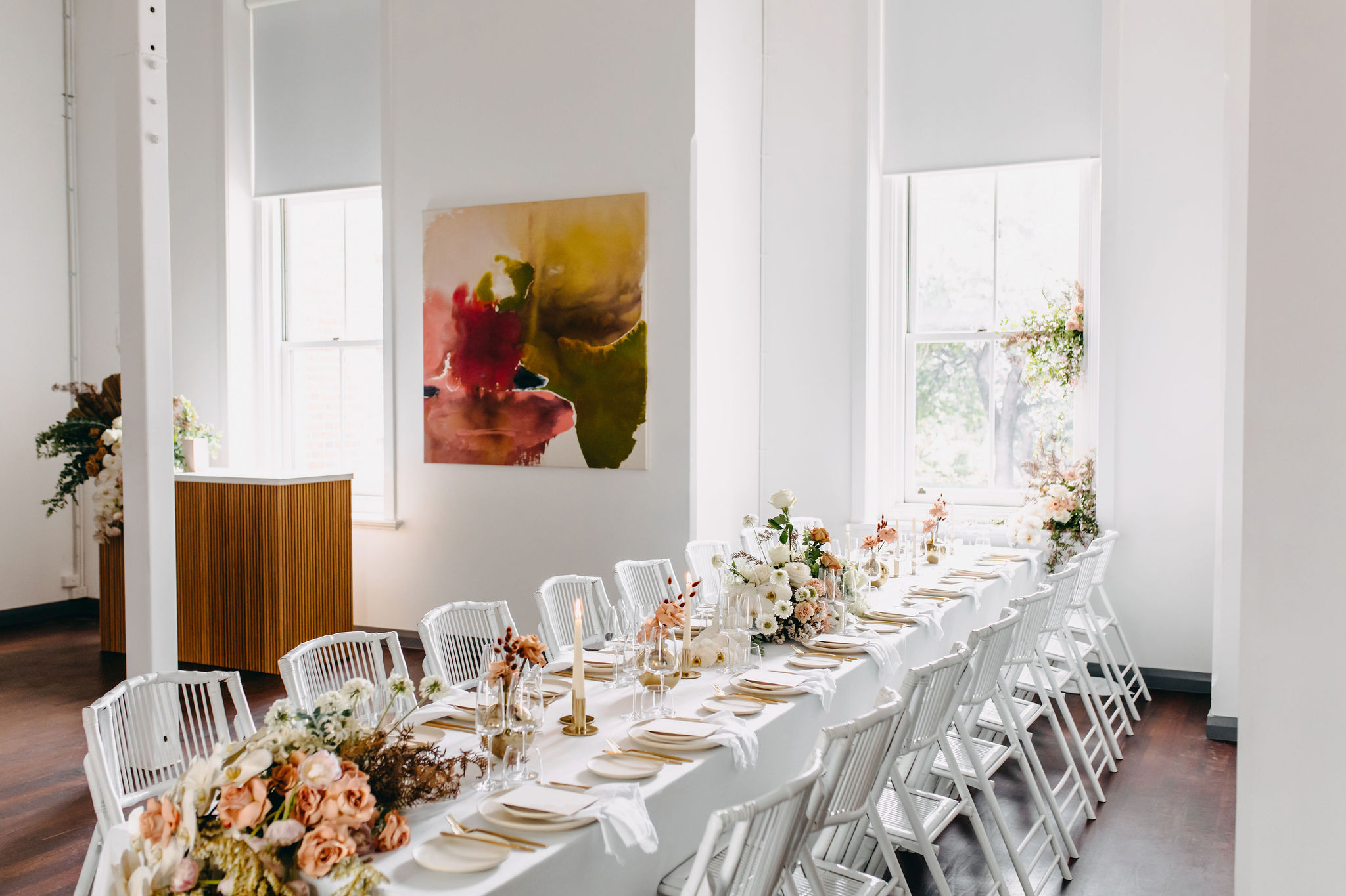Each year, The State Buildings showcase two Wedding Open Days, inviting guests to browse the many stunning venues this iconic building has to offer for private weddings and parties. We are proud to participate as the in-house florist, showcasing our beautiful blooms alongside these quintessential Perth establishments. This is a gallery shows off the stunning work produced for The Mark. You can also find our wedding galleries for other venues within The State Buildings by clicking on the following links: